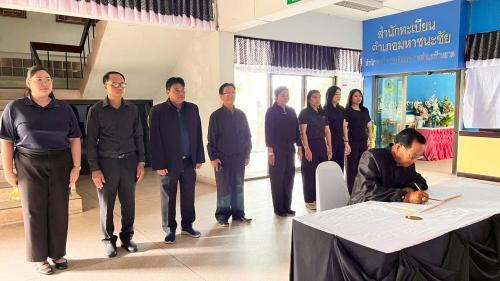 เครือข่ายกองทุนแม่อำเภอมหาชนะชัยพร้อมด้วยเจ้าหน้าที่พัฒนาชุมชน ร่วมลงนามแสดงความไว้อาลัยเบื้องหน้าพระฉายาลักษณ์ สมเด็จพระนางเจ้าสิริกิติ์ พระบรมราชินีนาถ พระบรมราชชนนีพันปีหลวง