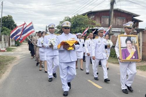 1.พิธีแห่อัญเชิญเงินพระราชทานขวัญถุงกองทุนแม่ของแผ่นดินเข้าสู่วัดบ้านดอนเรือ