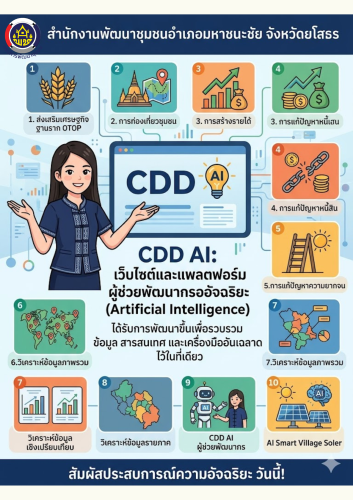 10. AI Smart Village Soler “CDD AI Chatbot” ถูกออกแบบเน้นการสื่อสารเป็นภาษาไทย เข้าใจบริบทของงานพัฒนาชุมชน และพร้อมเป็นผู้ช่วยดิจิทัลที่เรียนรู้ และพัฒนาอย่างต่อเนื่อง เพื่อยกระดับการให้บริการของกรมการพัฒนาชุมชน สู่ยุค Digital Government อย่างแท้จริง เริ่มต้นพูดคุยกับ CDD AI Chatbot ได้แล้ว